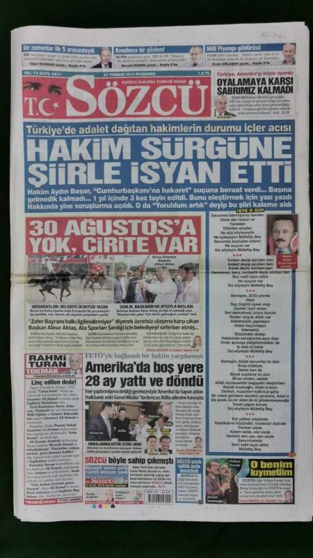 Sözcü Gazete 25 Temmuz 2019 Hakim Sürgüne Şiirle İsyan Etti,Berat Albayrak,Hakan Atilla,Ekrem İmamoğlu,Volkan Konak,Maksim Dadaşev,Subriel Matias,Vladimir Putin,Ryan Babel,Henry Onykekuru,Juan Jesus,Miguel Borja,Erhan Çelik,Tayfun Selen adlı eser, Kitap > Süreli Yayınlar > Gazeteler > Türkiye > Genel > Günlük kategorisinde İkinci El olarak satıştadır.