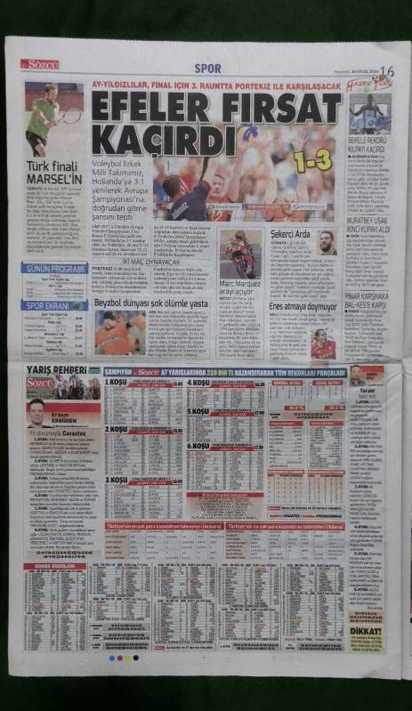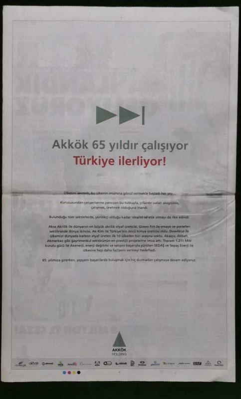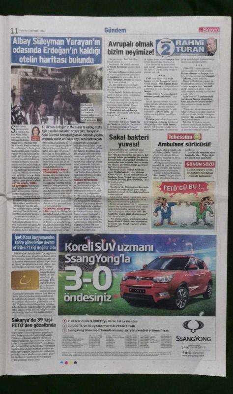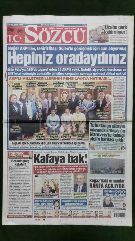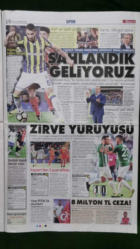 Kitap 2016 yılında yayınlanmıştır. 20 sayfadır. Sözcü Gazete 26 Eylül 2016 Hepiniz Oradaydınız Fetullah Gülen,Bayram Özçelik,Afif Demirkıran,Alaaddin Kaya,Safiye Seymenoğlu,Adem Tatlı,Mahmut Bayram,Sinan Çetin,Emmanuel Emenike,Moussa Sow,Dick Advocaat,Mehmet Topal,Jorquera,Aziz Behich,Bruma,Aurelion Chedjou,Marsel İlhan,Tansel Çölaşan,Akkök Reklamı adlı eser Türkçe dilindedir.