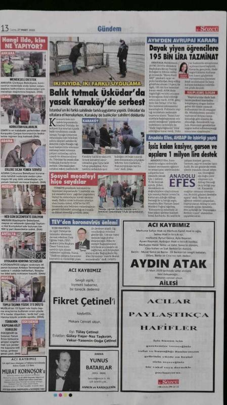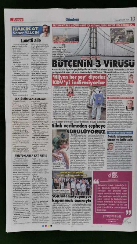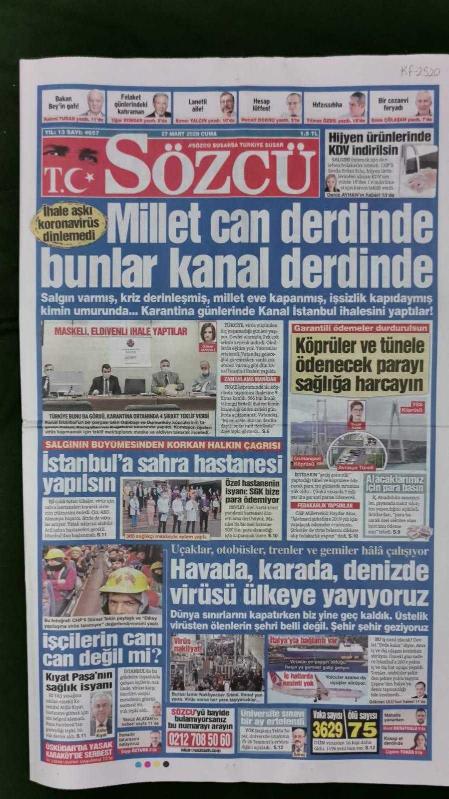 Kitap 2020 yılında yayınlanmıştır. 16 sayfadır. Sözcü Gazete 27 Mart 2020 Millet Can Derdinde Bunlar Kanal Derdinde,Kraliçe Elizabeth,Chloe Middleton,Boris Johnson,Nihat Özdemir,Gianni İnfantino,Servet Yardımcı,Adem Büyük,Sergen Yalçın,Tuncay Şanlı,Sinem Ünsal,Yüksel Şengül,Kerem Kupacı,Yekta Saraç,Ekrem İmamoğlu,Kemal Kılıçdaroğlu adlı eser Türkçe dilindedir.