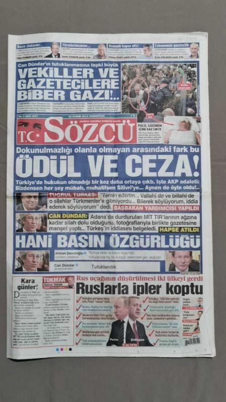 Kitap 2015 yılında yayınlanmıştır. 24 sayfadır. Sözcü Gazete 28 Kasım 2015 Ödül Ve Ceza ! ,Can Dündar,Ahmet Davutoğlu,Recep Tayyip Erdoğan,Vladimir Putin,Tuğrul Türkeş,Bilal Kısa,Wesley Sneijder,Mustafa Denizli,Luis Nani,Mehmet Topal,Ozan Tufan,Onur Recep Kıvrak,Cenk Tosun,Ersan Adem Ünal,Erdem Gül,Levent Gök,Bilal Erdoğan adlı eser Türkçe dilindedir.