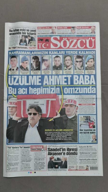 Kitap 2018 yılında yayınlanmıştır. 20 sayfadır. Sözcü Gazete 3 Mart 2018 Üzülme Ahmet Baba Bu Acı Hepimizin Omzunda,Meral Akşener,Temel Karamollaoğlu,İlyas Çakır,Alvaro Negredo,Ricardo Quaresma,Pepe,Mehmet Ekici,Boby Dixon,Uğur Dündar,Angela Merkel,Justin Trudeau,Donald Trump,Binali Yıldırım,Celal Şengör,Mustafa Şentop,İlber Ortaylı adlı eser Türkçe dilindedir.