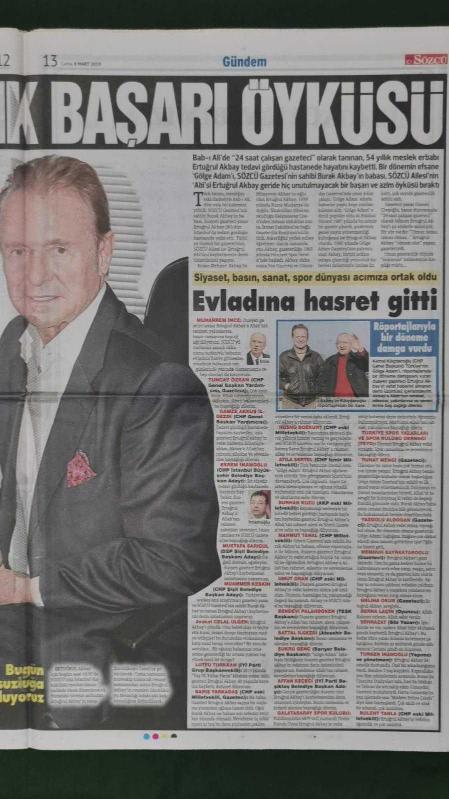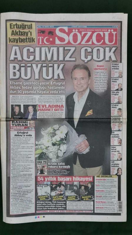 Kitap 2019 yılında yayınlanmıştır. 24 sayfadır. Sözcü Gazete 8 Mart 2019 Acımız Çok Büyük,Ertuğrul Akbay'ı Kaybettik,Burak Akbay,Süleyman Demirel,Bülent Ecevit,Turgut Özal,Necmettin Erbakan,Tim Cook,Donald Trump,Michael Jackson,Şenol Güneş,Mbaye Diagne,Fatih Terim,Fernando Muslera,İrem Yaman,Nicolas Maduro,Martin Kriener,Ertuğrul Akbay Taziye İlanları,Sıla Gençoğlu,Ahmet Kural,Cemal Enginyurt,Bülent Arınç adlı eser Türkçe dilindedir.