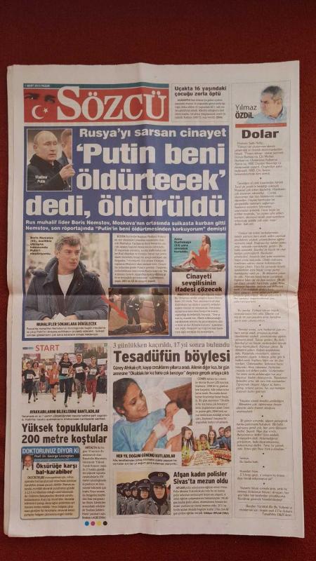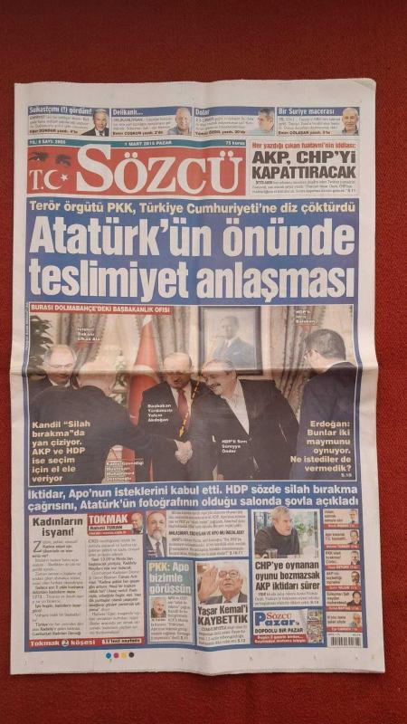 Kitap 2015 yılında yayınlanmıştır. 20 sayfadır. Sözcü Gazetesi 1 Mayıs 2015 Atatürk'ün Önünde Teslimiyet Anlaşması,AKP CHP'yi Kapattıracak,Yaşar Kemal'i Kaybettik,Kulübede Altın Buldu,Şampiyonluk Coşkusu Gibi,Kocaman Darbe,Fener'e Dost Kazığı,Kaza İstemiyorum,Yanal Gidiyor,TFF'ye Maçımızı Öne Alın Başvurusu adlı eser Türkçe dilindedir.