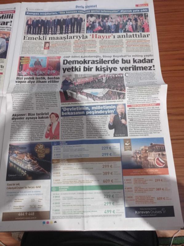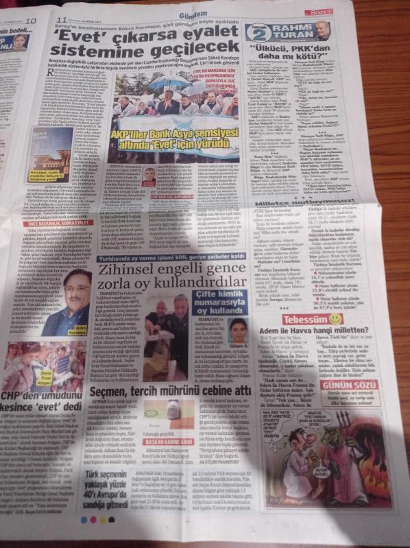 Sözcü Gazetesi - 10 Nisan 2017 - Gizli Golcü Josef De Souza - Dick Advocaat - ABD Kuzey Kore'ye Uçak Gemisi Gönderdi - Kapadokya'da Balon Faciası - Yurtdışında Oy Verme İşlemi Bitti Geriye Şaibe Kaldı - Sinan Oğan Hayır Cephesi Milli Mücadele Ruhuyla Çalışıyor - Meral Akşener Bize FETÖ'cü Terörist Diyen Aynaya Baksın adlı eser Türkçe dilindedir.