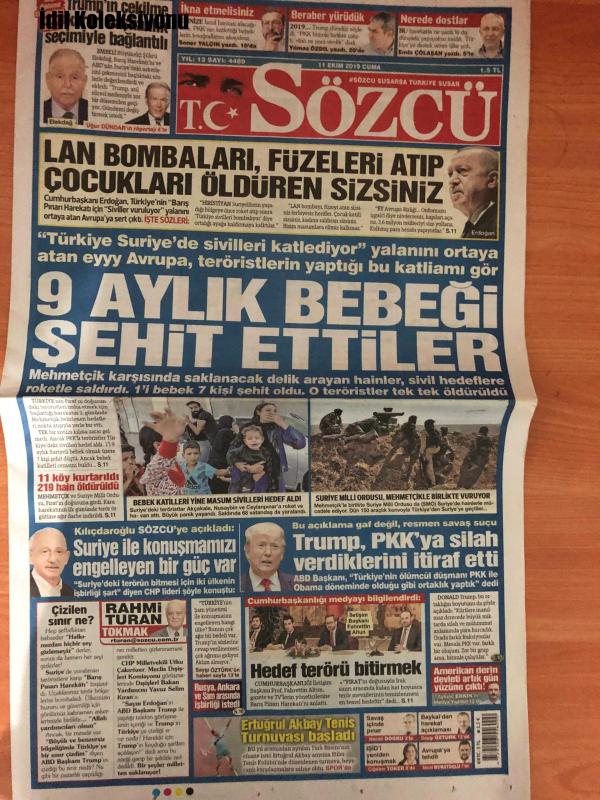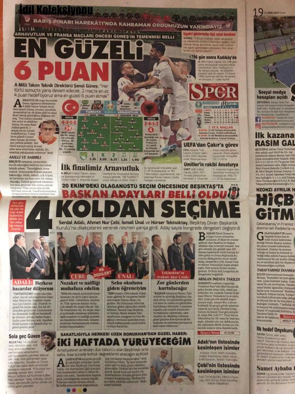 Sözcü Gazetesi, 11 Ekim 2019, Şükrü Elekdağ, Uğur Dündar, Soner Yalçın, Yılmaz Özdil, Emin Çölaşan, Uğur Dündar, Erdoğan, Rahmi Turan, Utku Çakırözer, Yavuz Selim Kıran, Saygı Öztürk, Fahrettin Altun, Ertuğrul Akbay, Çiğdem Toker, Aylin Erkin, Murat Muratoğlu,TFF, Barış Pınarı Harekatı'nda Kahraman Ordumuzun Yanındayız, Arnavutluk ve Fransa Maçları Öncesi Güneş'in Temennisi Belli, En Güzeli 6 Puan, A Milli Takım Teknik Direktörü Şenol Güneş, A Milli Takım Teknik Direktörü Şenol Güneş Soruları Yanıtladı, Akıllı ve Sabırlı Birlikte Oynayan Oyuncuları Tercih Edeceğim, Sola Geç Güven, F.Bahçe Ülker, Türkiye T.D: Şenol Güneş, Ovidiu Hategan (Romanya), TRT 1, EURO2020 Arnavutluk, T.D: Edoardo Reja, İlk Finalimiz Arnavutluk, İşgalci Gösterenler Bizi Rahat Bıraksın, 1796 Gün Sonra Kadıköy'de, UEFA'dan Çakır'a Görev, Ümitler'in Rakibi Avusturya, 20 Ekim'deki Olağanüstü Seçim Öncesinde Beşiktaş'ta Başkan Adayları Belli Oldu, Onyekuru, Samet Aybaba adlı eser Türkçe dilindedir.