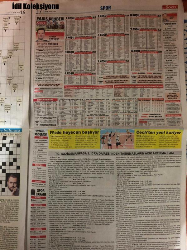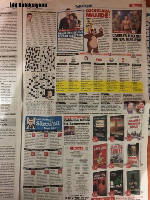 Sözcü Gazetesi, 11 Ekim 2019, Şükrü Elekdağ, Uğur Dündar, Soner Yalçın, Yılmaz Özdil, Emin Çölaşan, Uğur Dündar, Erdoğan, Rahmi Turan, Utku Çakırözer, Yavuz Selim Kıran, Saygı Öztürk, Fahrettin Altun, Ertuğrul Akbay, Çiğdem Toker, Aylin Erkin, Murat Muratoğlu,TFF, Barış Pınarı Harekatı'nda Kahraman Ordumuzun Yanındayız, Arnavutluk ve Fransa Maçları Öncesi Güneş'in Temennisi Belli, En Güzeli 6 Puan, A Milli Takım Teknik Direktörü Şenol Güneş, A Milli Takım Teknik Direktörü Şenol Güneş Soruları Yanıtladı, Akıllı ve Sabırlı Birlikte Oynayan Oyuncuları Tercih Edeceğim, Sola Geç Güven, F.Bahçe Ülker, Türkiye T.D: Şenol Güneş, Ovidiu Hategan (Romanya), TRT 1, EURO2020 Arnavutluk, T.D: Edoardo Reja, İlk Finalimiz Arnavutluk, İşgalci Gösterenler Bizi Rahat Bıraksın, 1796 Gün Sonra Kadıköy'de, UEFA'dan Çakır'a Görev, Ümitler'in Rakibi Avusturya, 20 Ekim'deki Olağanüstü Seçim Öncesinde Beşiktaş'ta Başkan Adayları Belli Oldu, Onyekuru, Samet Aybaba adlı eser, Kitap > Süreli Yayınlar > Gazeteler kategorisinde İkinci El olarak satıştadır.