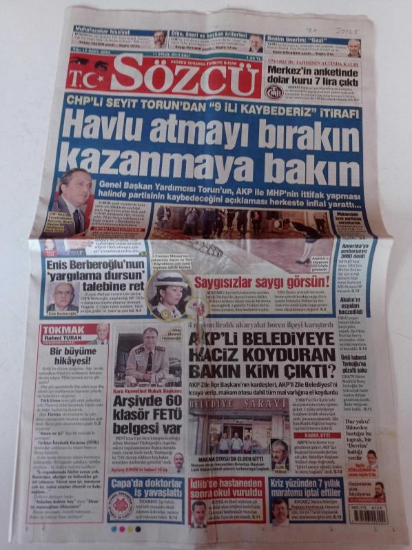 Sözcü Gazetesi - 11 Eylül 2018 - Ulusal Takım İlk Galibiyetini Aldı - Mircea Lucescu - CHP'li Seyit Torun'dan 9 İli Kaybederiz İtirafı - Kara Kuvvetleri Hukuk Başkanı Arşivde 60 Klasör FETÖ Belgesi Var - Enis Berberoğlu'nun Yargılama Dursun Talebine Ret - Demet Akalın'ın Eşyaları Haczedildi adlı eser Türkçe dilindedir.
