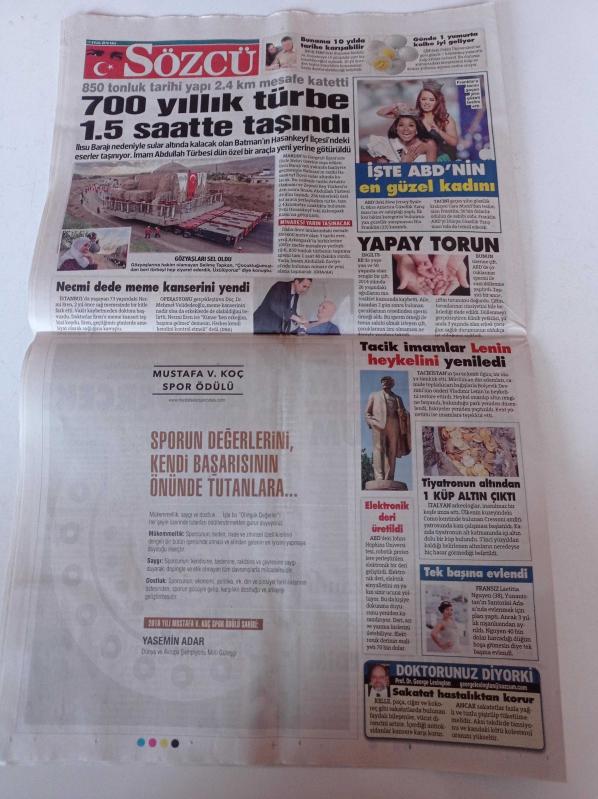 Sayfa Boyutu: 35*56cm Sayfa Sayısı:20 Sözcü Gazetesi Yıpranma, sararmalar, kupon kesiği ve yırtılmalar zamana bağlı olarak görülebilir