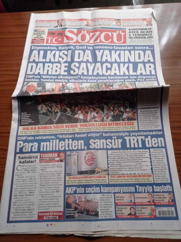 Sözcü Gazetesi - 12 Nisan 2015 - Türk Futbolu Şimdi Yandı - Diego Ribas Başkanı Çiğnedi Kendi İpini Çekti - Ergenekon Balyoz Gezi Ve Tencere Tavadan Sonra Alkışı da Yakında Darbe Sayacaklar - Para Milletten Sansür TRT'de - AKP'nin Seçim Kampanyasını Recep Tayyip Erdoğan Başlattı adlı eser, Kitap > Süreli Yayınlar > Gazeteler kategorisinde İkinci El olarak satıştadır.