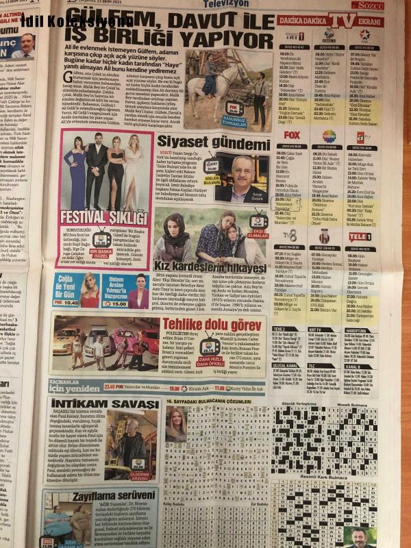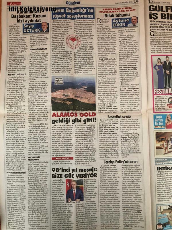 Sözcü Gazetesi, 13 Ekim 2021, Ekrem İmamoğlu, Turan, Uğur Dondar, Necati Doğru, Saygı Öztürk, Yılmaz Özdil, Emin Çölaşan, Nedim Türkmen, Mehtap Özcan Ertürk, Deniz Zeyrek, Özlem Güvenli, İsmail Akduman, Desi Svet, Stefan Kuntz, Burak Elmas, Adnan Polat, Timur Şehircilik Planlama A.Ş., Erden Timur, Farklı Kazan Bekle, Sırpça Menajer, Sarı-Lacivertlilerin Ekonomik Olarak Bir İlki Yaşadı, Stadın Yeni İsmi, Avrupa Basketbolunun Kupası, Tofaş'ın Yenilgisi, Galatasaray Başkanı Burak Elmas'tan Açıklama, Kula Kulluk Edenlere Yazıklar Olsun!, Neden Çok Seviliyor?, Elde Kaldı Şükür!, Görme Kılavuzu, Ekran Rezaletleri, 3600 Ek Göstergeye Göre Memurlar ve Emekliler Ne Kadar Zam Alacak?, Dolar 9 Lira Oldu Haberin Var Mı?Kara Kış Fonu Kurulsun Vatandaş Elektriksiz Doğalgazsız Kalmasın, Doların Seyri, İktidarın Baskısı, Lastik Yakma Teşvik Edilirken..., Tarım Bakanlığı'na Rüşvet Soruşturması, İşsizlik Maaşına Talep, Alparslan Türkeş Parkı Satılıyor adlı eser, Kitap > Süreli Yayınlar > Gazeteler kategorisinde İkinci El olarak satıştadır.