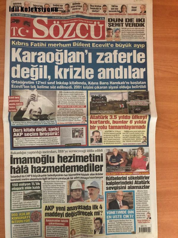 Sözcü Gazetesi, 13 Eylül 2021, Rahmi Turan, Sinan Meydan, Deniz Zeyrek, Ayşe Sucu, Murat Muratoğlu, Cüneyt Tokgöz, Yekta Güzelözden, Ali Ekber Ertürk, Çetin Doğan, Ismail Akduman, Adil Karaismailoğlu, Sami Selçuk, Resul Tosun, Muharrem Erkek, Rubat Mengi, Saygı Öztürk, Ercan Taner, Abdullah Avcı, Yusuf, Ismail, Trondsen, Trabzonspor, Galatasaray, Emre, Muslera, Halil, Fatih Terim, Nwakaeme, Cicaldau, Berkan, Edgar le, Morutan, Aytaç, Arda, Alper, Boey, Feghouli, Marcao, Yedlin, Oğulcan, Anthony Nwakaeme, Duygun Yarsuvat, Burak Elmas, Ümit Davala, Ali Yüce, Köksal Ünlü, Abdurrahim Albayrak, Metin Öztürk, Kemal Kılıçdaroğlu, Ekrem İmamoğlu, Suat Arslanboğa, Zorbay Küçük, Doktorlarda İstifa Furyası, Sakarya'daki Atatürk Etkisi, Müslümanlar Krizden Kurtulmak İstiyorlar mı, Ülkeyi Hristiyan Demokratlar mı Yönetiyor adlı eser, Kitap > Süreli Yayınlar > Gazeteler kategorisinde İkinci El olarak satıştadır.