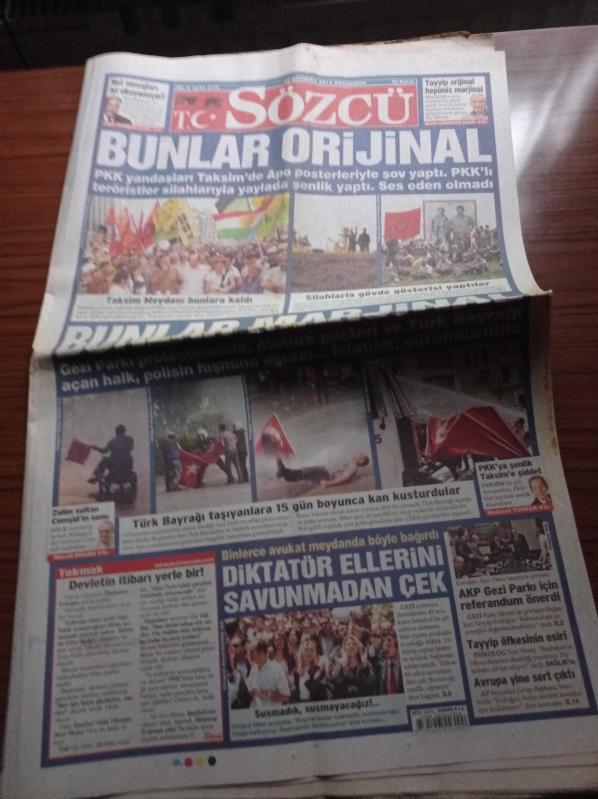 Sözcü Gazetesi - 13 Haziran 2013 - Ersun Yanal Fenerbahçe'de - Fener'den Götze'li Savunma - Trabzonspor'da Zokora Şoku - İspanyol Vekil Erdoğan'a Türkçe Seslendi Halkına Şiddet Uygulama - Baro Ayakta- Penguen Haberciliği - Taksim Meydanı PKK'lılara Kaldı - Sırrı Süreyya Önder - Ertuğrul Kürkçü adlı eser Türkçe dilindedir.