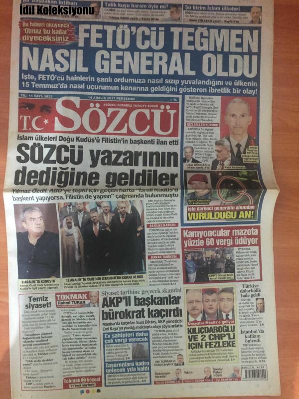 Sözcü Gazetesi, 14 Aralık 2017, Yılmaz Özbil, Emin Çölaşan, Yılmaz Özdil, Rahmi Turan, Yılmaz Özdil, Yılmaz Özdil, Donald Trump, Recep Tayyip Erdoğan, Suat Diktaş, Gürsel Tekin, Faik Öztrak, Uğur Dündar, Galatasaray Başkanı Özbek, Akhisar, Spor, Locada, Tekom, Sozcan, Beraber, Aslan'a, Galatasaray Tekerlekli Sandalye Basketbol Takımı, HDI Sigorta, Aralık, Antrenör, Yıldırım, Daha, Fatih Altaylı, Kemerburgaz'daki, SPOR, Tangocu, Arjantin, River Plate, Gonzalo Martinez, Sporting Be Flamengo, Haks Salo, Umpleksi, Canaydın, TT Stadyumu, Ozhan Canaydın Konferans Salonu, Galatasaray Divan Kurulu, Bayern, Caner Erkin, Osmanlı, Beşiktaş, Enol Güneş, Aydın, Malatya, Sivas Bld, UEFA Şampiyonlar Ligi, Vodafone, Orman, Transder, Van Persie, Fenerbahçe, Karabük, Antalyaspor, Trabzonspor, Türkiye, Almanya adlı eser Türkçe dilindedir.