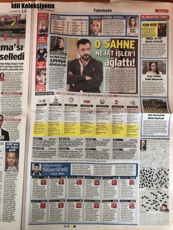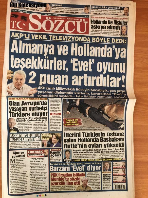 Sözcü Gazetesi, 14 Mart 2017, Bekir Coşkun, Yılmaz Özdil, Emin Çölaşan, Numan Kurtulmuş, Hüseyin Kocabıyık, Günter Krings, Wolfgang Schaeuble, Meral Akşener, Rahmi Turan, Ömer Çelik, Mark Rutte, Mesut Barzani, Saygı Öztürk, Soner Yalçın, Ümit Özdağ, Murat Muratoğlu, Gökhan Töre, Ali Aydın, Aboubakar, Ergin Ataman, Marcelo, Rıza Çalımbay, Mehmet Özdilek, İbrahim Üzülmez, Sergen Yalçın, Ahmet Nur Çebi, Şenol Güneş, Ali Şen, Aziz Yıldırım, Ali Koç, Simon Kjaer, Jeremain Lens, Salih Uçan, Ersun Yanal adlı eser Türkçe dilindedir.