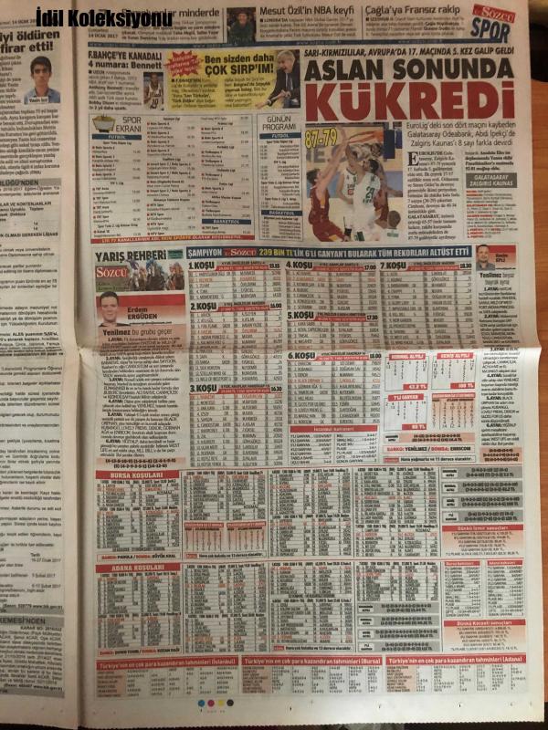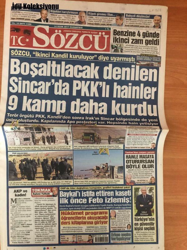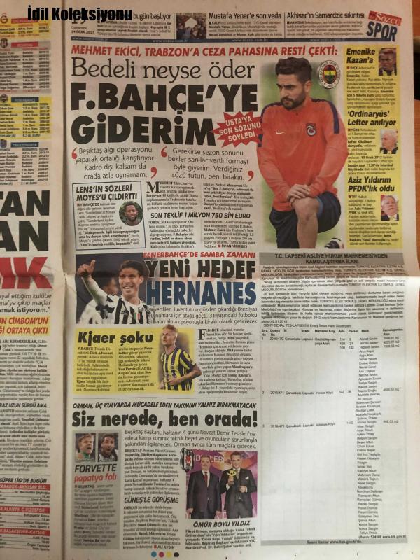 Sözcü Gazetesi, 14 Ocak 2017 Cumartesi, Uğur Dündar, Bekir Coşkun, Yılmaz Özdil, Emin Çolaşan, Saygı Öztürk, Sadettin Tantan, Nil Soysal, Rahmi Turan, Asuman Aranca, Necati Doğru, Munt Muratoglu, Yargı Tokadı!, Köpekleri Karıştırmayın, Köpek Giremez Filan..., Bahçeli Düşünsün!, Ahmet Çalık, Ümit Karan, Dusko Tosic, Mehmet Akgün, Mustafa Pektemek, Tuna Üzümcü, Baki Mercimek, Souleymane Youla, Ali Tandoğan, Veysel Cihan, Okan Koç, Ahmed Hassan, Tolga Doğantez, Aykut Demir, Soner Aydoğdu, Yasin Öztekin, Engin Baytar, Isaac Promise, Lars F. Risp, Ayman Abdelaziz, Hasan Sönmez, Erkan Sulejmani, N'Doye, Jeremain Lens, David Moyes, Simon Kjaer, Søderlund, Martinez, Eder, Pratto, Bony, Demba Ba adlı eser Türkçe dilindedir.