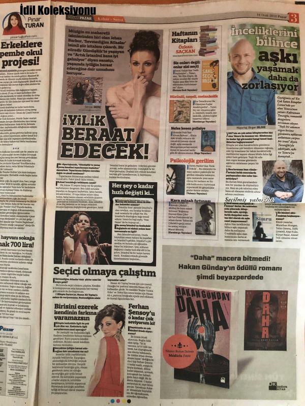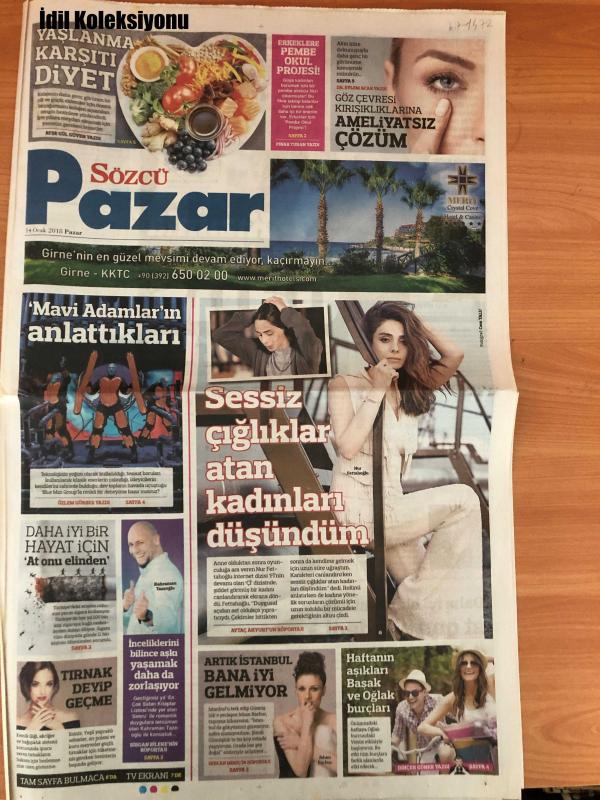 Sözcü Gazetesi, 14 Ocak 2018, Ayşe Gül Güven, Pınar Turan, Dr. Eylem Acar, Özlem Gürses, Kahraman Tazeoğlu, Birgan Bileken, Nur Fettahoğlu, Aytaç Akyurt, Jehan Barbur, Sercan Meriç, Dinçer Güner, Yaşlanma Karşıtı Diyet, Erkeklere Pembe Okul Projesi, Altın Küre Dokunuşuyla Daha Genç Bir Görünüme Kavuşmak Mümkün, Göz Çevresi Kırışıklıklarına Ameliyatsız Çözüm, Mavi Adamlar'ın Anlattıkları, Daha İyi Bir Hayat İçin 'At Onu Elinden', Tırnak Deyip Geçme, İnceliklerini Bilince Aşkı Yaşamak Daha Da Zorlaşıyor, Tam Sayfa Bulmaca Da TV Ekranı 7de, Sessiz Çığlıklar Atan Kadınları Düşündüm, Artık İstanbul Bana İyi Gelmiyor, Haftanın Aşıkları Başak ve Oğlak Burçları adlı eser Türkçe dilindedir.