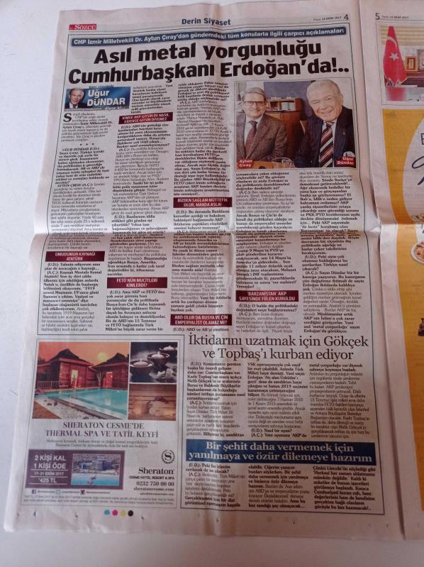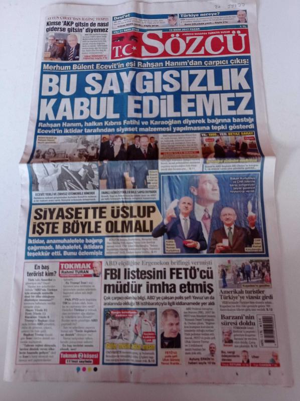 Sözcü Gazetesi - 15 Ekim 2017 - Galatasaray Teknik Direktörü İgor Tudor - Rahşan Ecevit Bülent Ecevit'e Yapılan Saygısızlık Kabul Edilemez - Kültür Bakanı Numan Kurtulmuş - CHP Lideri Kemal Kılıçdaroğlu - FBI Listesini FETÖ'cü Müdür İmha Etmiş - Mesut Barzani'nin Süresi Doldu adlı eser Türkçe dilindedir.