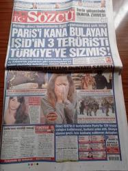 Sözcü Gazetesi - 15 Kasım 2015 - Polisin Dinci Teröristlerle İlgili Uyarısındaki Şok Bilgi - Fransa'daki Katliam Dünyayı Sarstı - Türk Kızı Elif Doğan Saldırıda Can Verdi - Paris'i Kana Bulayan IŞİD'in 3 Teröristi Türkiye'ye Sızmış - 2. Dünya Savaşı'ndan Bu Yana En Kanlı Saldırı adlı eser, Kitap > Süreli Yayınlar > Gazeteler kategorisinde İkinci El olarak satıştadır.