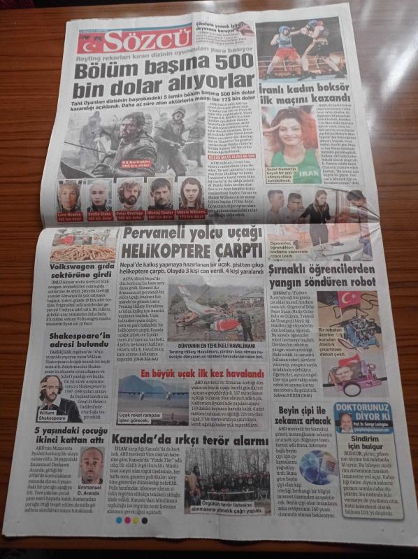Sözcü Gazetesi - 15 Nisan 2019 - 10 Kişilik Fenerbahçe Galatasaray'a Çelme Taktı - Fatih Terim - Ali Koç - İranlı Kadın Boksör İlk Maçını Kazandı - Shakespeare'in Adresi Bulundu - Tunç Soyer'den İstanbul Mesajı - İBB Egemen Bağış'a Şoför Bağışlamış - Ekrem İmamoğlu Kimin Mazbatasını Kime Vermiyorsun adlı eser Türkçe dilindedir.