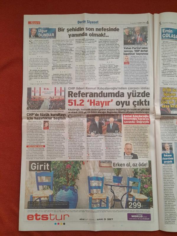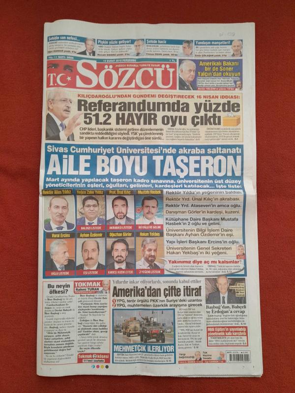 Kitap 2018 yılında yayınlanmıştır. 20 sayfadır. Sözcü Gazetesi 15 Şubat 2018 Referandumda Yüzde 51.2 Hayır Oyu Çıktı,Aile Boyu Taşeron,Amerika'dan Çifte İtiraf,Şike İddiası,Sorunlar Dağ Gibi,Bayern'in Düşünecek Halimiz Yok,Galibiyet Uğuru Feghouli,Efes'in Gurur Gecesi,Taraftara Aşık Oldum,Fırtına Alarma Geçti,Başakşehir'i Unutun adlı eser Türkçe dilindedir.