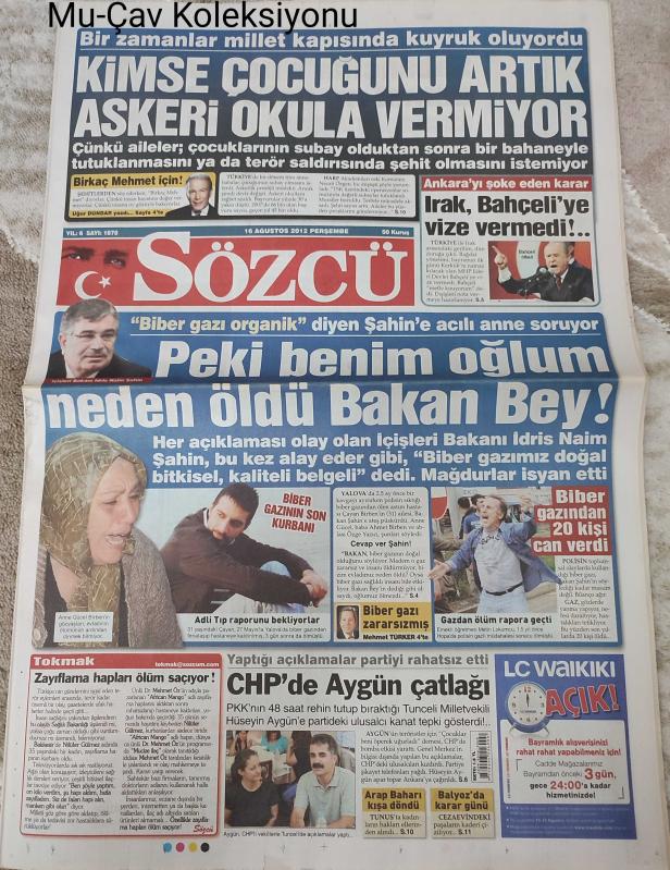 Sözcü Gazetesi, 16 Ağustos 2012, Necati Özgen, Hüseyin Aygün, Billur Kalkavan, Bade İşçil, Mirkelam, Aysel Sabancı, Özge Özberk, Kadir Doğulu, Cenk Eren, Burcu Güneş, Mustafa Ayata, Müşfik Kenter, Onur Çilingir, Zorba Saltürk, Arda Turan, Atletico Madrid, Necati Ateş, Ünal Aysal, Sadri Şener, Juan Figer, Oğuzhan Özyakup, Enver Türkileri adlı eser Türkçe dilindedir.