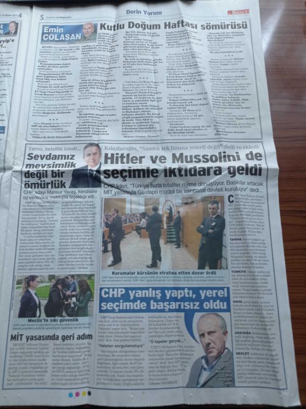 Sözcü Gazetesi - 16 Nisan 2014 - Herkes Onun Önünde El Pençe Divan Durmalı Recep Tayyip Erdoğan Milleti İşte Böyle Görmek İstiyor - Devlet Bahçeli Reza Zarrab'a Yine Şarlatan Dedi - Balyoz Tutsaklarından Şapkalı Mesaj İsyanın Kod Adı TD 134 - Eski Vekile Pusu Eşi Ve Kızı Öldü adlı eser Türkçe dilindedir.