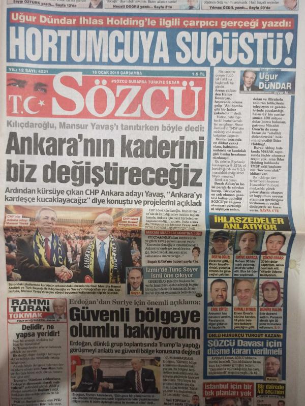 Sözcü Gazetesi - 16 Ocak 2019 - Ertuğrul Akbay - Zahide Yetiş - Sayime Başçı - Rahmi Turan - Tugay Saday - Veli Toprak - Deniz Ayhan - Saygı Öztürk - Yıpranma, Sararma, Yırtılmalar Zamana Bağlı Olarak Görülebilir.