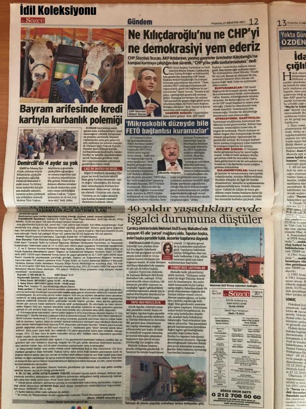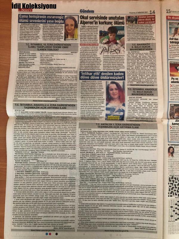 Sözcü Gazetesi, 17 Ağustos 2017, Uğur Dündar, Emin Çölasan, Yılmaz Özdil, Gürsel Tekin, Saygı Öztürk, Mustafa Akaydın, Rahmi Turan, Asuman Aranca, Zeynep Gürcanlı, İsmet Yılmaz, Necati Doğru, Soner Yalçın, Yekta G. Özden, Ege Cansen, Toniuge, Mahmut, Ela, Ben Yedder, Napole, Rovany, Espanya, Galatasaray, Özbek, Riva, Başkan Dursun Özbek, Cimbom, G.Saray, Tudor, Igor Tudor, Sinan Gümüş, Fiorentina, Juventus, Asamoah, Vida, Linnes, Beşiktaş, Pepe, Negredo, Lens, Medel, Fabri, Adriano, Mitrovic, Quaresma, Babel, Atiba, Talisca, Senol Günes, Gökhan Gönül, Adriano, Carole, Burak Yılmaz, Irfan Aktar, Nazifoğlu, Ali Sami Yen, Sedat Doğan, Mert Yaşar adlı eser Türkçe dilindedir.