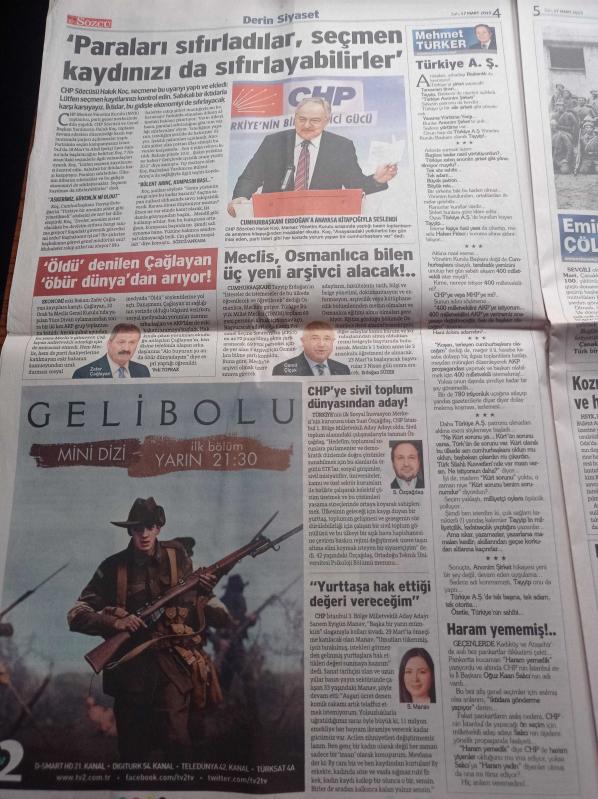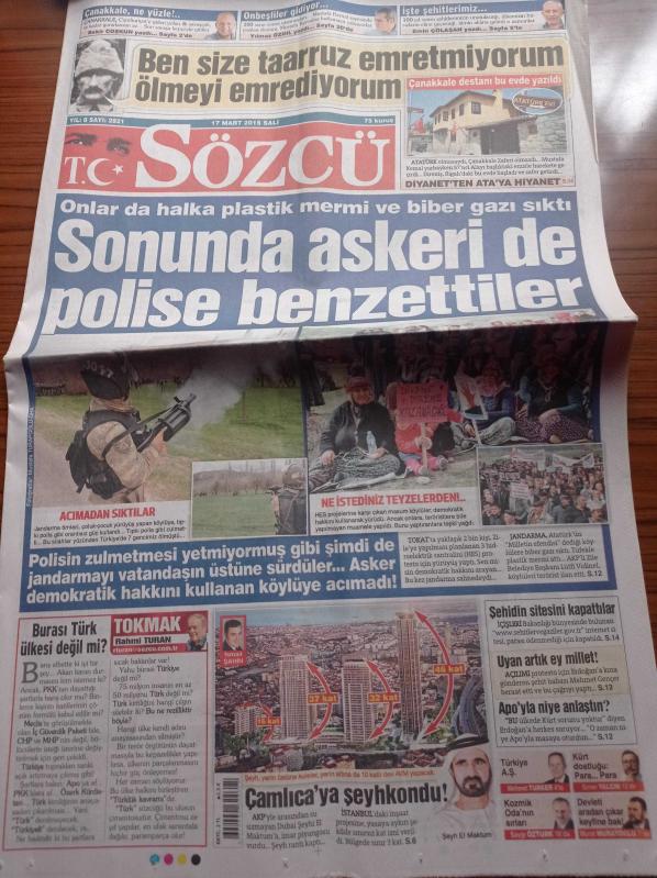 Sözcü Gazetesi - 17 Mart 2015 - Beşiktaş'ın Zaferi Şampiyonluk Alameti - Yılın Futbolcusu Semih Kaya - Çanakkale Destanı Bu Evde Yazıldı - Sonunda Askeri De Polise Benzettiler - Çamlıca'ya Şeyhkondu - HES Projelerine Karşı Eylem adlı eser Türkçe dilindedir.