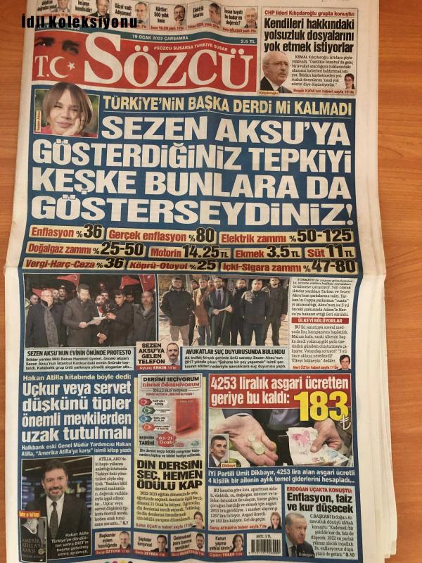 Sözcü Gazetesi, 19 Ocak 2022, Uğur Dündar, Necati Doğru, Soner Yalçın, Yılmaz Özdil, Emin Çölaşan, Sezen Aksu, Başak Kaya, Hakan Atilla, Aytunç Erkin, Mert Öz, Saygı Öztürk, Sultan Uçar, Deniz Zeyrek, Murat Muratoğlu, Deniz Ayhan, Çiğdem Toker, Onder Karaveli, Rosier, Mesut Yildirim, Ercan Taner, Ahmet Calik, Fatih Calik, Ali Ferahbot, Umit Avadan, Halil Umut Meler, Kemal Yilmaz, Volkan Ahmet Narinç, Sarper Barış Saka, Luiz Gustavo, Novak, Serdar Aziz, Szalai, Mili Mahmutoğlu, Pleiss, Galibiyet, Ne Futbolcuları Ne de Karaveli'yi Tatmin Etti, Turna, Cimdeki Gölgeler, Önemli Olan Kazanmak, Karagümrük'te Caner Yaktı, Batshuayi Seri Yaptı, Kar Yağışı Maçı Erteletti adlı eser Türkçe dilindedir.