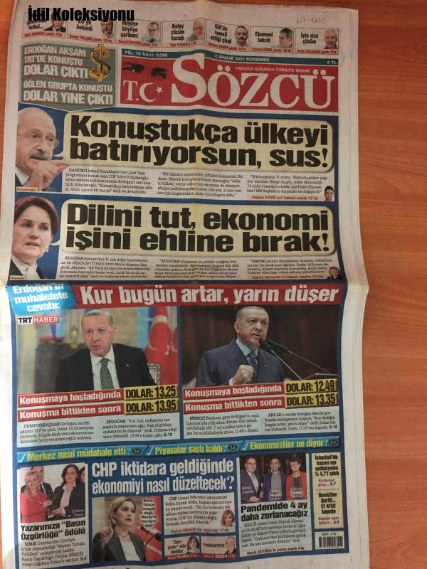 Sözcü Gazetesi, 2 Aralık 2021, Soner Yalçın, Hakan Kaya, Deniz Ayhan, Ruhat Mengi, Serpil Yılmaz, Deniz Zeyrek, Kılıçdaroğlu, Akgener, Büyüye Büyüye Gariban!, Kolay Çözüm Tuzağı, Gül'ün Temsil Ettiği Çizgi, Ekonomi Tahsili, İşte Size Çözüm, Dilini Tut, Ekonomi İşini Ehline Bırak!, Francesco Farioli, Atakan Çankaya, Abdullah Avcı, Ahmet Ağaoğlu, Christoph Daum, Slaven Bilic, GİDİR!... larak Hakemlerle Alakalı Bir Ortak Bir Söylemdir, Pjanic Şoku: 1 Hafta Yok, Fenerbahçe ve Göztepe, PFDK'ya Tepkili İSYAN, Kale Diouf'un Turu Hatay'ın, Altın Yatırım Türkiye Kupası, Teklif Gelirse Engel Olmam, Yeni Teknik Direktör Arayışlarına Başlayan Fenerbahçe'de Listenin İlk Sırasında İtalyan Çalıştırıcı Var, Yine Yeniden Bilic, Abdullah Avcı Adını Trabzonspor Tarihine Yazdırmanın Eşiğinde, Bodrum'da Büyük Coşku, 3. Yunan Geliyor adlı eser Türkçe dilindedir.