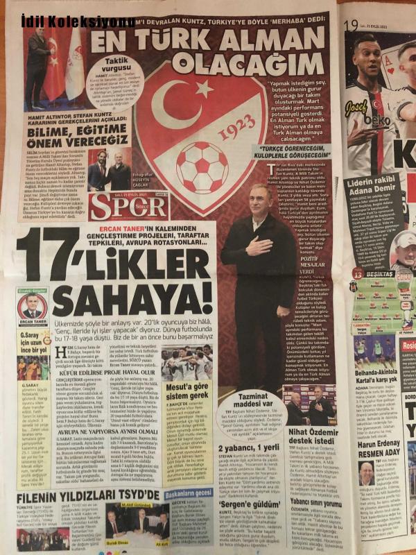 Sözcü Gazetesi, 21 Eylül 2021, Emin, Çölaşan, Murat, Muratoğlu, Yılmaz, Özdil, Aytunç, Erkin, Ruhat, Mengi, Halil, Ataş, Şahin, Mengü, Fatih, Ceylan, Pınar, Turhanoğlu, Kemal, Atlan, Seyir, Zevici, O, Deace, Adana Demir, Akintola, Ali Koç, Atiba, Batshuayi, Beşiktaş, Burak Elmas, Çaykur Rize, Fatih Terim, Fatih Terim, Fenerbahçe, Giovanni Guidetti, Gökhan Inler, Hamit Altıntop, Harun Erdenay, Josef Atiba, Kenan Pjanic, Mehmet Topal, Mesut Ozil, Montella, Nihat Özdemir, Necip, Ras, Ridvan, Rosier, Selim Soydan, Sergen Yalçın, Sözcü, Stefan Kuntz, Teixeira, TFF, Umut Meras, Vodafone Park, Vincenzo Montella, Welinton, A Milli Takım'ı Devralan Kuntz, Türkiye'ye Böyle 'Merhaba' Dedi, En Türk Alman, Cimdeki Gölgeler, Filenin Yıldızları TSYD'de, Josef Beko Liderin Rakibi Adana Demir, 'Yapmak İstediğim Şey, Bütün Ülkenin Gurur Duyacağı Bir Takım Oluşturmak adlı eser Türkçe dilindedir.