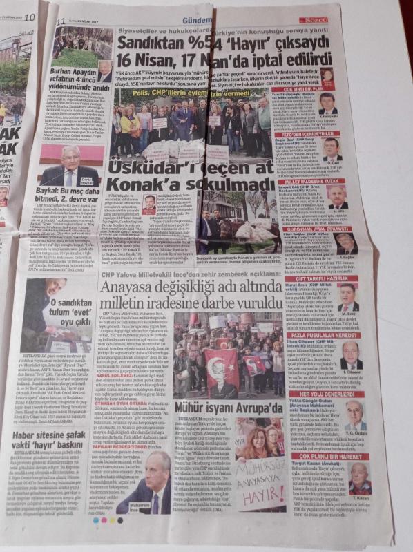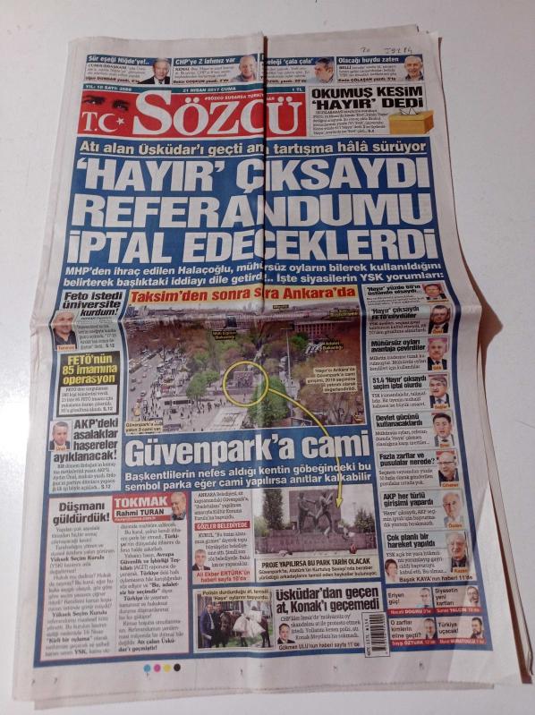 Sözcü Gazetesi - 21 Nisan 2017 - MHP Milletvekili Saffet Sancaklı - Hayır Çıksaydı Referandumu İptal Edeceklerdi - Taksim'den Sonra Sıra Ankara'da - Güven Park'a Cami - Okumuş Kesim Hayır Dedi - FETÖ'nün 85 İmamına Operasyon adlı eser Türkçe dilindedir.