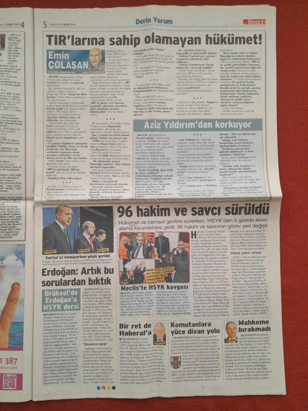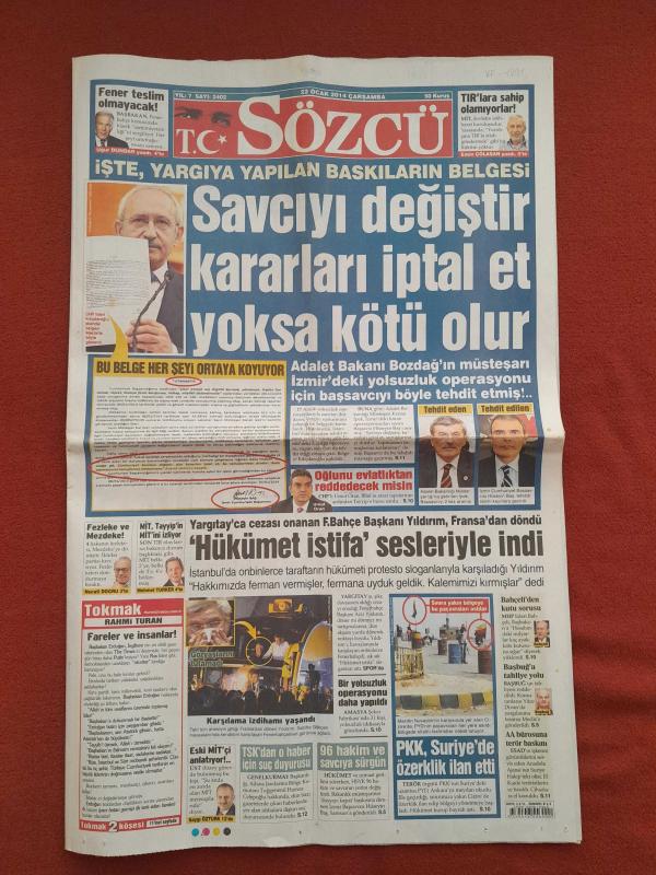 Kitap 2014 yılında yayınlanmıştır. 20 sayfadır. Sözcü Gazetesi 22 Ocak 2014 Savcıyı Değiştir Kararları İptal Et Yoksa Kötü Olur,Hükümet İstifa Sesleriyle İndi,PKK Suriye'de Özerklik İlan Etti,Nejat Siroz Hastası Değil,Bülent İkiyüzlü Bir İnsan,Kartal'da Son Aday Coelho,Yekta Pes Etti,Yıldırım Krallar Gibi Karşılandı,Başkan 1 Ay Daha Serbest Yerli Harekatına Devam,Şampiyonluk İçin Hiçbir Şey Bitmedi adlı eser Türkçe dilindedir.