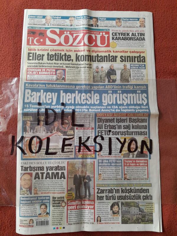 Sözcü Gazetesi 22 Şubat 2020 İdlib Krizini Çözmek İçin Askeri ve Diplomatik Kanallar Çalışıyor,Barkey Herkesle Görüşmüş,Zarrab'ın Köşkünden Her Türlü Usulsüzlük Çıktı, Yiğido'nun Zirve İnadı,Devler Kötü Başladı,Anadolu Efes Panzer Gibi,Obradovic Pes Etmedi,Survivor Dolmabahçe,Cimbom Formda Ama Fener Yenilmez adlı eser, Kitap > Süreli Yayınlar > Gazeteler > Türkiye > Genel > Günlük kategorisinde İkinci El olarak satıştadır.