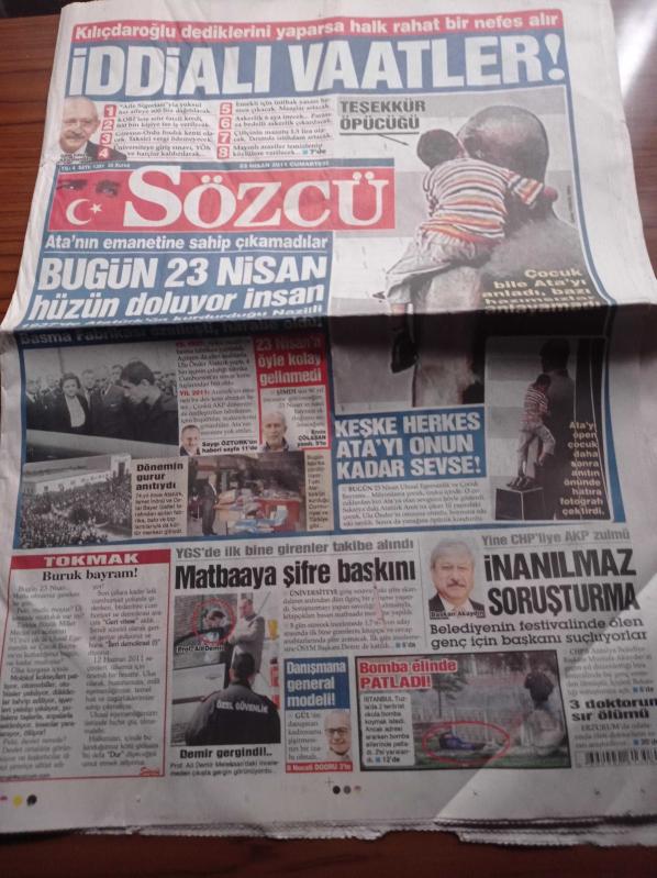 Sözcü Gazetesi - 23 Nisan 2011 - Fenerbahçe Didier Drogba Ve Vagner Love İçin Harekete Geçti - Formula 1 Elden Gidiyor - Mustafa Topaloğlu'nu TÜBİTAK'a Önerdiler- 23 Nisan Ulusal Egemenlik ve Çocuk Bayramı - Kemal Kılıçdaroğlu - Matbaaya Şifre Baskını adlı eser Türkçe dilindedir.