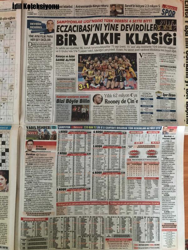 Sözcü Gazetesi, 23 Şubat 2017, Müjdat Gezen, Uğur Dündar, Bekir Coşkun, Yılmaz Özdil, Emin Çölaşan, Yusuf Halaçoğlu, Özlem Gürses, Mahmut Tanal, Hulusi Akar, Mehmet Dişli, Rahmi Turan, Recep Tayyip Erdoğan, Devlet Bahçeli, Meral Akşener, Gürsel Erol, Binali Yıldırım, Temel Karadeniz, Barış Yarkadaş, Necati Doğru, Soner Yalçın, Yekta Güngör Özden, Ege Cansen, UNC, Fener, Avrupa, R TASTI, Divan Kurulu Başkanı Vefa Küçük, Krasnodar, Lens, Alper, Volkan Şen, Tanju, Prekazi, Erdal, Uğur, Rıdvan, Şenol, Feyyaz, Ali, Rıza, Fernando Muslera, Zoran Simovic, Galatasaray, Beşiktaş, Osmanlıspor, Mustafa Reşit Akçay, Engin Ardıç, Ekpe Udoh, Atatürk, Galatasaray, Tanju, Prekazi, Erdal, Uğur, Rıdvan, Şenol, Feyyaz, Ali, Rıza, Fernando Muslera, Zoran Simovic, Hapoel Beer-Sheva, Olympiakos, Mustafa Denizli, TFF, Servet Yardımcı, Juventus, Porto, Leicester City, Sevilla, St Etienne, Manchester United, PAOK, Schalke adlı eser Türkçe dilindedir.