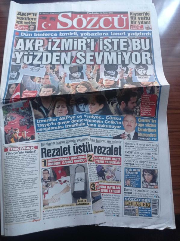Sözcü Gazetesi - 24 Aralık 2010 - Dün Binlerce İzmirli Yobazlara Lanet Yağdırdı - AKP İzmir'i İşte Bu Yüzden Sevmiyor - Hüseyin Çelik'in Ağır Sözleri İzmirlileri Öfkelendirdi - Duruşmada Hakimin Önünde Sanığı Vurdular - AKP'li Ömer Çelik İki Dil Talebi Suikasttır adlı eser Türkçe dilindedir.