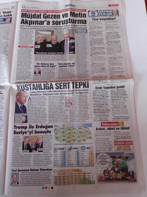 Sözcü Gazetesi - 24 Aralık 2018 - Türkiye'ye Ve Mehmetçik'e Küstahça Dil Uzatan Netanyahu - Metin Akpınar Ve Müjdat Gezen'e Soruşturma Açıldı - Polislerin Apoletleri Feto'ya Okutulmuş - Tarihi İskele Kafe İçin Kiraya Verildi - Devrim Şehidi Kubilay Anıldı - Türkiye'nin İlk Rafinerisi Kapanabilir - Filistin - Recep Tayyip Erdoğan adlı eser Türkçe dilindedir.