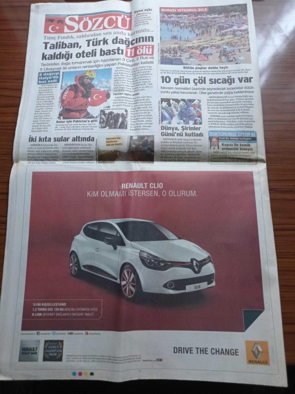 Sözcü Gazetesi - 24 Haziran 2013 - Akdeniz Oyunları - Sibel Şimşek'ten 1 Altın Bir Gümüş - Recep Tayyip Erdoğan Evlere Üç Hilalli Yeşil Renkli Osmanlı Bayrağı Asılmasını İstedi - AKP Zulmünün 3 Hali - Sivas Katliamı İçin Saygı Mitingi - Teröristler Silahlarıyla Kuzey Irak'a Çekiliyor - Öğretmene Gezi Eylemi Yoklaması - CIA Muhalifleri İncirlik'te Eğitiyor adlı eser Türkçe dilindedir.
