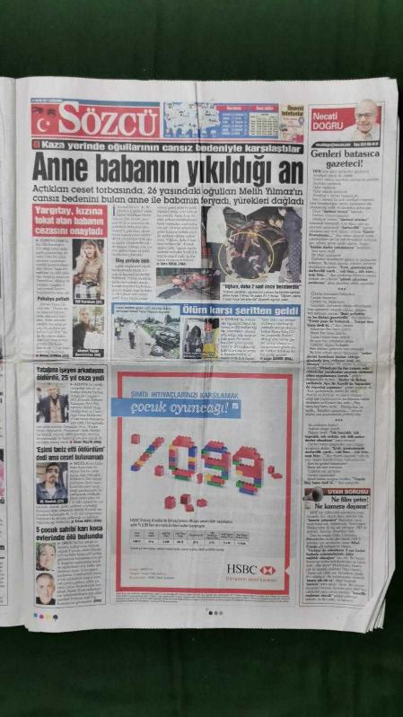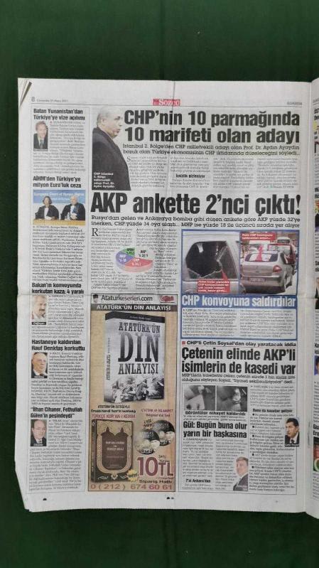 Sözcü Gazetesi 25 Mayıs 2011 Turgay Ciner,Selçuk İnan,Fatih Terim,Egemen Korkmaz,Gökhan Gönül,Alex De Souza,Aykut Kocaman,Emre Belezoğlu,Manuel Fernandes,Şebnem Bozok,Ece Erken,Başak Sayan,Abdullah Gül,Rauf Denktaş,Taner Yıldız,Recep Tayyip Erdoğan,Bülent Arınç,Kemal Kılıçdaroğlu,Tuğba Özay,Caner Erkin,Semih Şentürk adlı eser, Kitap > Süreli Yayınlar > Gazeteler > Türkiye > Genel > Günlük kategorisinde İkinci El olarak satıştadır.