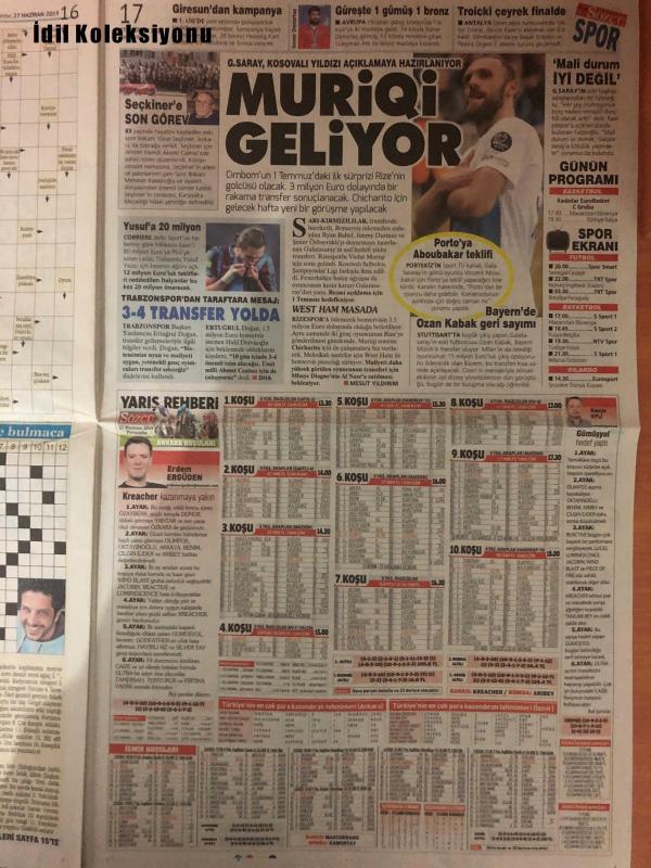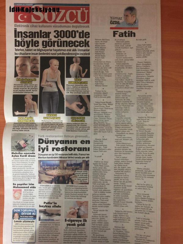 Sözcü Gazetesi, 27 Haziran 2019, Şükrü Elekdağ, Uğur Dündar, Fatih Her, Rahmi Turan Tokmak, Ayşe Çelik, Bülent Arınç, Efsane Albay, Necati Doğru, Yekta Gözden, Ege Cansen, Aytung Erkin, Carpici Tespit, Her Dokuz Kişiden Birisi Suriyeli, IBB Binası Türk Bayrakları ve Atatürk Posterleriyle Donatıldı, Uğur Dündar'ın Röportajı, Fatih Her, Erken Öten Horoz İmamoğlu, Rahmi Turan Tokmak, Arınç, Türkiye, İtalya, Slovenya, Macaristan, Belarus, Rusya, Belçika, Sırbistan, Nedim Türkmen, Ali Koç, Mehmet Topal, Birsel Vardarlı Demirmen, Tyler Boyd, Charles Kabore, Hüseyin Yücel, Beşiktaş, Fenerbahçe, Galatasaray, Galatasaray Kongresi ve Belirtiler, Taman'ın İğmarşı ve Motivasyon, Yapılandırma Anlaşması ve Kulüplerin Durumu, Fenerbahçe'nin Temizlik Operasyonu, Yönetim Değişiklikleri ve Güçlenme, Mehmet Topal'ın Ayrılışı, adlı eser, Kitap > Süreli Yayınlar > Gazeteler kategorisinde İkinci El olarak satıştadır.