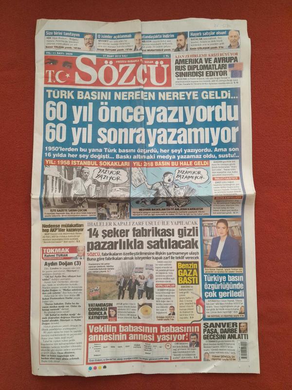 Sözcü Gazetesi 27 Mart 2018 Türk Basını Nereden Nereye Geldi,60 Yıl Önce Yazıyordu 60 Yıl Sonra Yazamıyor,14 Şeker Fabrikası Gizli Pazarlıkla Satılacak,Amerika ve Avrupa Rus Diplomatları Sınırdışı Ediyor,Fenerbahçe'de Kaos Var Galatasaray Şampiyon,Anadolu Efes'e TOFAŞ Morali,Kurtuluş Bu Gençlerde,Güneş'in Jokeri Kaan,Doğru İsim Faruk Özak,Hak Ederek Şampiyon Olanı Alkışlarım adlı eser, Kitap > Süreli Yayınlar > Gazeteler > Türkiye > Genel > Günlük kategorisinde İkinci El olarak satıştadır.
