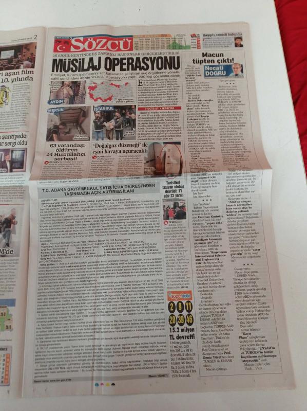Sayfa Boyutu: 35*56cm Sayfa Sayısı:20 Sözcü Gazetesi Yıpranma, sararmalar, kupon kesiği ve yırtılmalar zamana bağlı olarak görülebilir