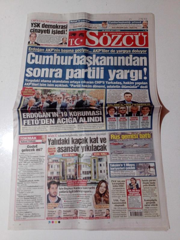 Sözcü Gazetesi - 28 Nisan 2017 - Galatasaray Başkanı Dursun Özbek Riva Onaylanınca Göbek Attım - Trabzon Başkanı Muharrem Usta - Tarihin En Büyük Fidyesi 500 Milyon Dolar - Cumhurbaşkanından Sonra Partili Yargı - Recep Tayyip Erdoğan'ın 19 Koruması FETÖ'den Açığa Alındı - Ebru Gündeş - Reza Zarrab - Taksim'e 1 Mayıs Bariyerleri Çekildi adlı eser Türkçe dilindedir.
