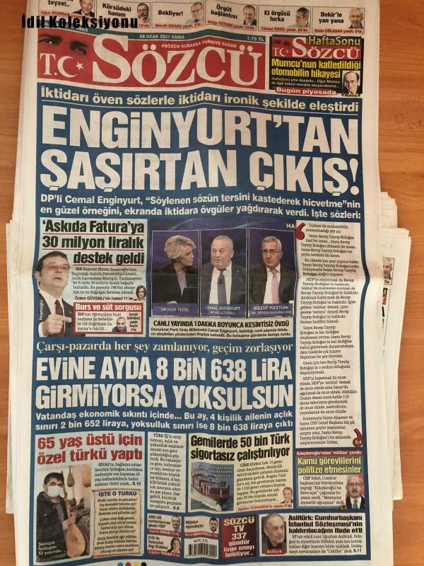 Sözcü Gazetesi, 29 Ocak 2021, Uğur Dündar, Soner Yalçın, Saygı Öztork, Bekir Yılmaz Özdil, Emin Çölaşan, Necati Doğru, Aytunç Erkin, Çiğdem Toker, Murat Muratoğlu, Özlem Güvemli, İsmail Saymaz, Nedim Türkmen, Asiltürk, Ahmet Ağaoğlu, Diagne, Feghouli, Fatih Terim, Gökhan Töre, Gustavo, Hayah Salama, Luiz Gustavo, Maxim, Mohamed, Muhammet Demir, Murqi, Omar, Ozan, Pelkas, Ricardo Sa Pinto, Sadri Şener, Samatta, Serdar Aziz, Tarkan, Taylan, Tissirand, Tosun Paşa, Beşiktaş, Diagne The End, Fenerbahçe'de, Furlatma Brom, Galatasaray, Mohamed İçin, Gider, Hulk Ülkesini Seçti, Jarse $ Siz Bula, Mbaye Diagne'nin İkinci Galatasaray Macerası Da Bitiyor adlı eser, Kitap > Süreli Yayınlar > Gazeteler kategorisinde İkinci El olarak satıştadır.