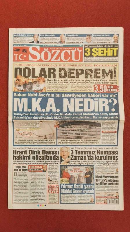 Sözcü Gazetesi 3 Aralık 2016 Aziz Yıldırım,Yılmaz Vural,Volkan Demirel,Volkan Şen,Moussa Sow,Cenk Tosun,Vincent Aboubakar,Dick Advocaat,Şenol Güneş,Robin Van Persie,Serdar Aziz,Ersun Yanal,Mesut Özil, Donald Trump,Angela Merkel,Hrant Dink,Ömer Halisdemir,Fetullah Gülen,Reza Zarrab,Arif Erdem,Müjdat Gezen,Yılmaz Özdil adlı eser, Kitap > Süreli Yayınlar > Gazeteler > Türkiye > Genel > Günlük kategorisinde İkinci El olarak satıştadır.