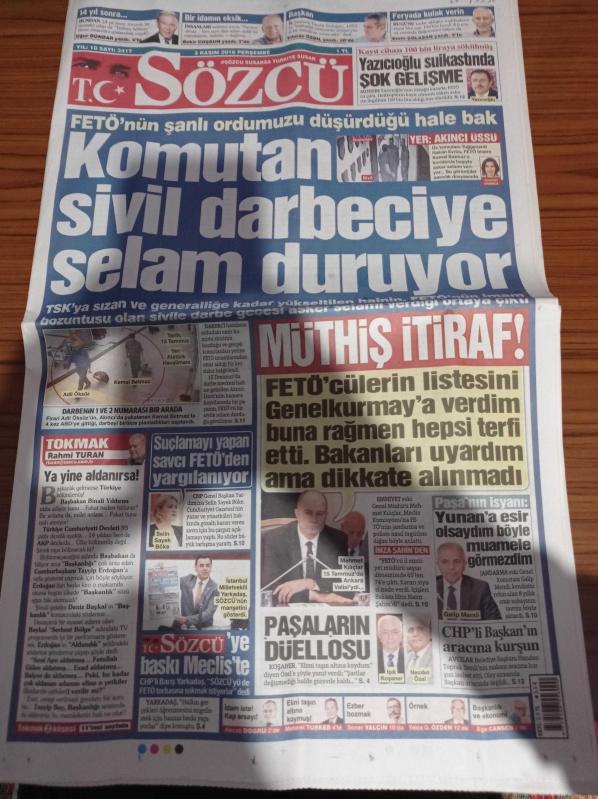 Sözcü Gazetesi - 3 Kasım 2016 - UEFA Avrupa Ligi'nde Fenerbahçe Manchester United Karşısında - Aziz Yıldırım Doğum Gününü Kutladı - FETÖ'nün Şanlı Ordumuzu Düşürdüğü Hale Bak Komutan Sivil Darbeciye Selam Duruyor - Galip Mendi Paşa'nın İsyanı Yunan'a Esir Olsaydım Böyle Muamele Görmedim - Selin Sayek Böke - Adil Öksüz - Muhsin Yazıcıoğlu Suikastında Şok Gelişme adlı eser Türkçe dilindedir.