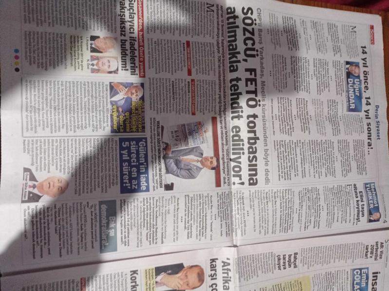 Sayfa Boyutu: 38*56cm Sayfa Sayısı:20 Sözcü Gazetesi Yıpranma, sararmalar, kupon kesiği ve yırtılmalar zamana bağlı olarak görülebilir