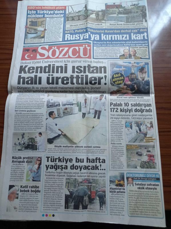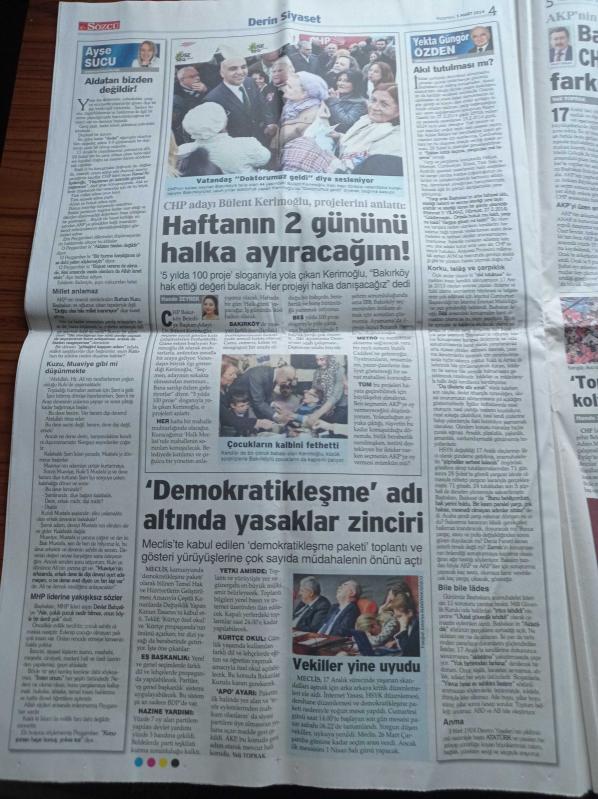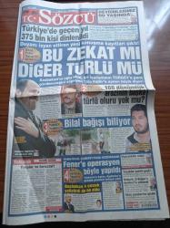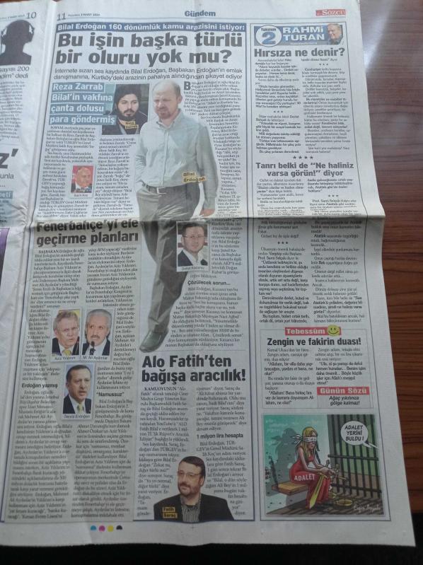 Sözcü Gazetesi - 3 Mart 2014 - Trabzon Avrupa'ya Veda Etti - Bilal Erdoğan Fatih Saraç'la Konuşuyor - Duyanı İsyan Ettiren Yeni Konuşma Kayıtları Çıktı - Bilal Erdoğan Babasının Danışmanı İle Konuşuyor 160 Dönümlük Arazinin Başka Türlü Oluru Yok Mu - İranlı Reza Zarrab 17 Aralık'ta Rüşvet Vermekten Tutuklandı - Fenerbahçe'ye Operasyon Böyle Yapıldı - Recep Tayyip Erdoğan - Mehmet Ali Aydınlar - Türkiye'de Geçen Yıl 375 Bin Kişi Dinlenildi adlı eser Türkçe dilindedir.
